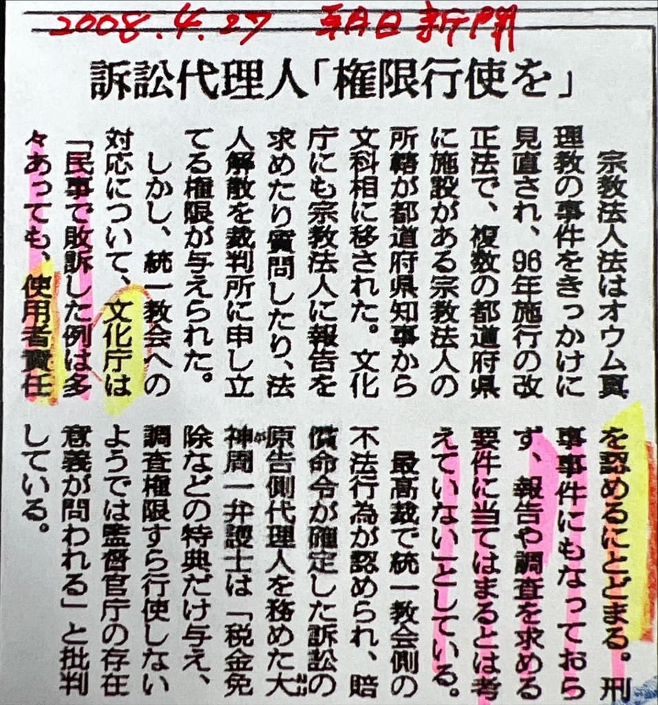 ※この記事は、許可を得て、川塵録の「文科省・文化庁は、2008年には「使用者責任」では家庭連合に責任はないと言っていた」を転載したものです。